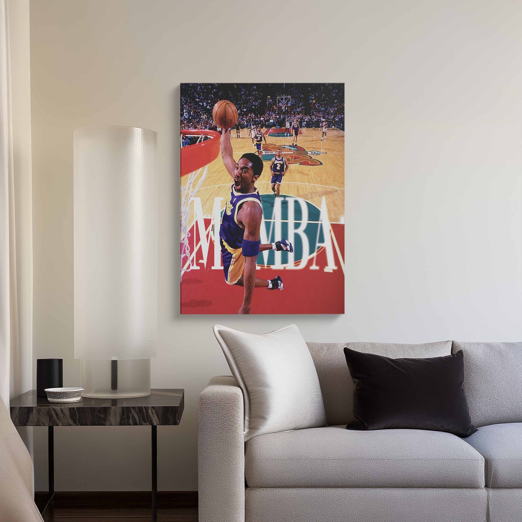 Bring inspiration to your space with this powerful Kobe Bryant canvas. Capturing an iconic in-air moment from his early career and paired with bold “MAMBA” typography, this artwork reflects determination, fearlessness, and the rise of a future legend. Perfect for home gyms, offices, studios, bedrooms, and athletic-themed interiors a daily reminder that greatness begins with the courage to rise above the rest.