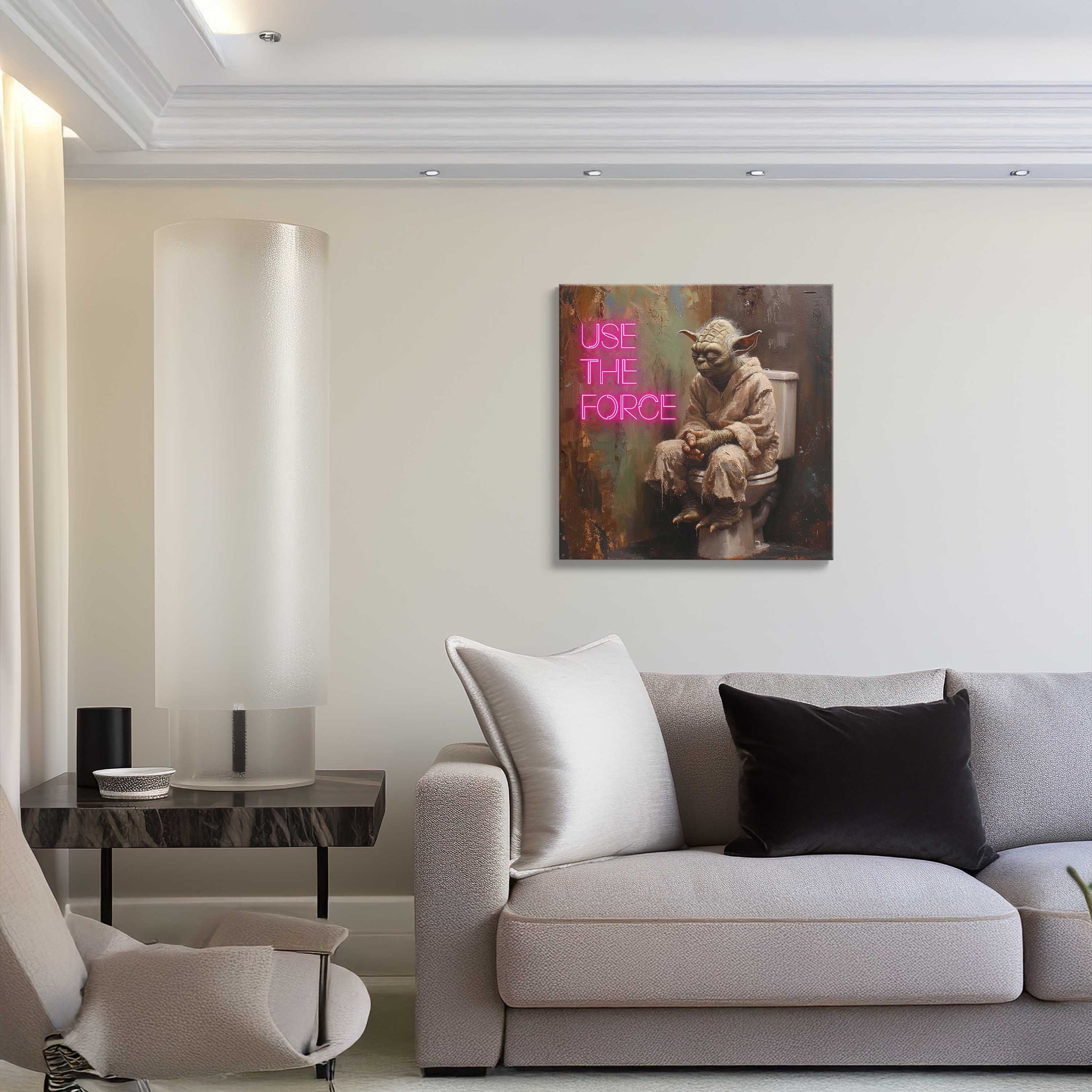 Upgrade your guest bathroom from "standard" to "memorable." This cheeky Yoda canvas is the ultimate conversation starter. Featuring a high-definition print of the Master on the toilet with a glowing "USE THE FORCE" sign, it’s the perfect way to show off your sense of humor.